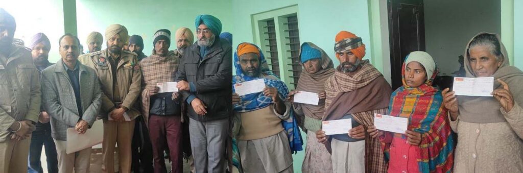 ਬਠਿੰਡਾ : ਪਿਛਲੇ ਦਿਨੀ ਬਠਿੰਡਾ ਦੇ ਪਿੰਡ ਦਾਨ ਸਿੰਘ ਵਾਲੇ ਵਿਖੇ ਕੁਝ ਸ਼ਰਾਰਤੀ ਅਨਸਰਾਂ ਵੱਲੋਂ 8 ਘਰਾਂ ਨੂੰ ਅੱਗ ਲਗਾਈ ਗਈ ਸੀ, SDM ਬਲਕਰਨ ਸਿੰਘ ਮਾਹਲ, DSP ਭੁੱਚੋ ਰਾਵਿੰਦਰ ਸਿੰਘ ਰੰਧਾਵਾ ਵੱਲੋਂ ਧਰਮਸ਼ਾਲਾ ਕੋਠੇ ਜੀਵਨ ਸਿੰਘ ਵਾਲਾ ਵਿਖੇ ਪੀੜਤਾਂ ਨੂੰ ਪੰਜਾਬ ਸਰਕਾਰ ਦੁਆਰਾ ਭੇਜੀ ਸਹਾਇਤਾ 50,50 ਹਜ਼ਾਰ ਰਾਸ਼ੀ ਦੇ ਚੈੱਕ ਭੇਂਟ ਕੀਤੇ ਹਨ। ਦੱਸ ਦੇਈਏ ਕਿ ਪੰਜਾਬ ਸਰਕਾਰ ਨੇ ਵਿੱਤੀ ਮਦਦ ਦਾ ਐਲਾਨ ਕੀਤਾ ਸੀ ਜੋ ਅੱਜ ਪੀੜਤਾਂ ਨੂੰ ਸੌਂਪੀ ਗਈ ਹੈ।